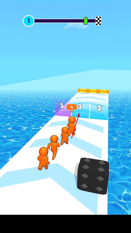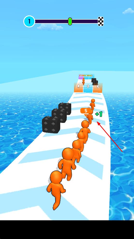 2、隊(duì)伍經(jīng)過帶有數(shù)字標(biāo)識的區(qū)域時(shí),小人數(shù)量會根據(jù)標(biāo)識變化,同時(shí)注意躲避黑色障礙物,為順利通過關(guān)卡奠定基礎(chǔ)。
