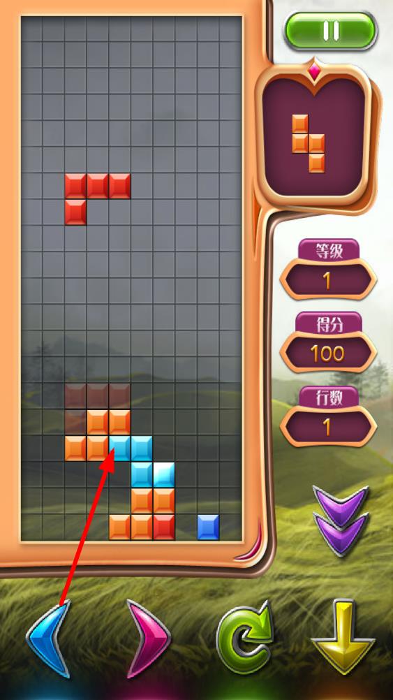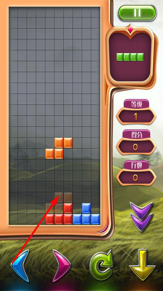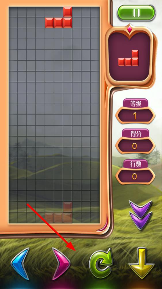 1、觀察初始下落的方塊,通過虛擬鍵盤操控其移動或旋轉(zhuǎn),將首個方塊放置在合適位置,開始積累消除行數(shù)。