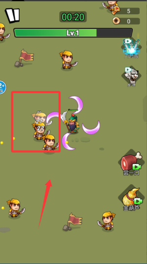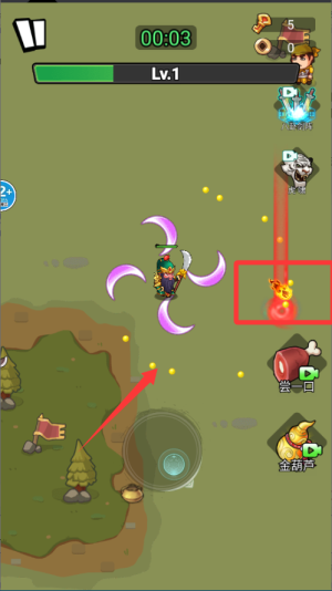 1、進入游戲后先熟悉滑動操作,控制角色移動進行自動攻擊。通過消滅小兵積累經(jīng)驗,快速提升等級解鎖更強大的技能。