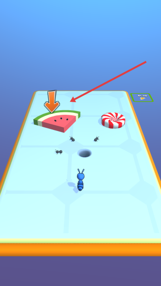 1、控制螞蟻移動至西瓜處,點擊西瓜即可開始收集,周圍小螞蟻會協(xié)同作業(yè),收集到的西瓜將作為后續(xù)運輸?shù)馁Y源基礎(chǔ)。