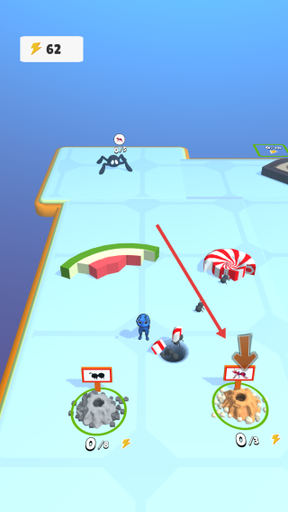 2、留意界面右上角的閃電收集任務(wù),需收集10個閃電,操控螞蟻前往閃電標(biāo)識區(qū)域獲取,收集后能量值會提升。