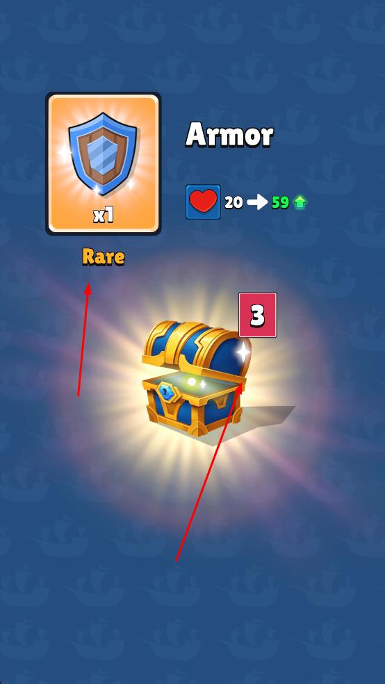 3、開啟寶箱可獲得稀有道具,留意下方的功能按鈕,通過升級和探索地圖,努力提升角色實力,完成游戲任務。