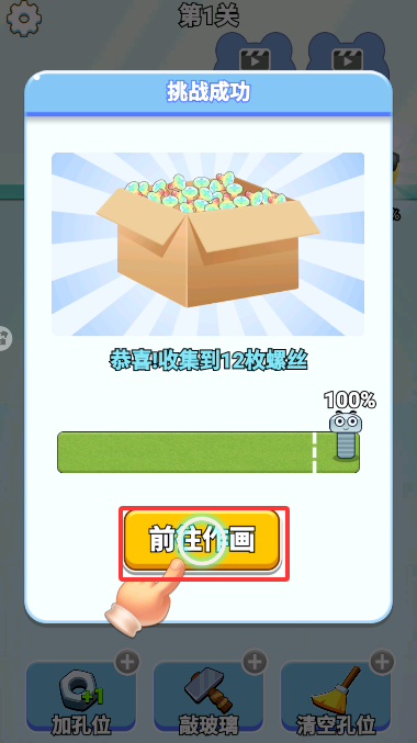 3、進入作畫后,點擊圖示按鈕即可發(fā)射螺絲。