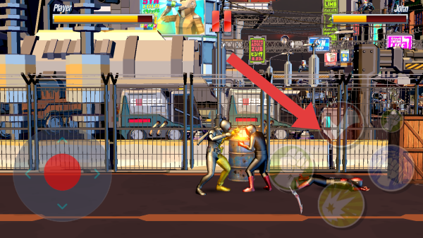 3、畫面中有格斗的兩位玩家,呈現(xiàn)戰(zhàn)斗動作,還有技能按鍵等操作界面元素,屬于典型的街機(jī)風(fēng)格格斗戰(zhàn)斗場景。