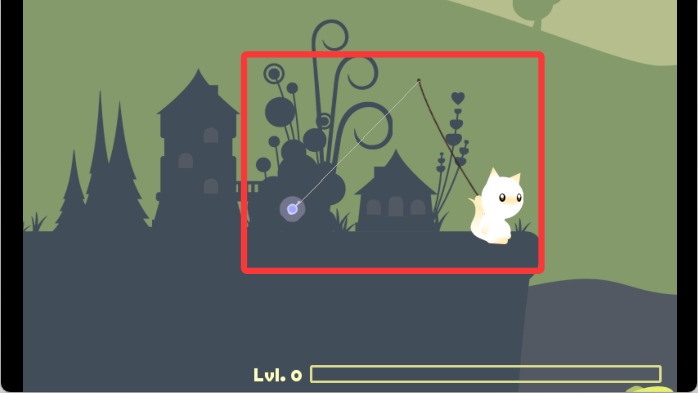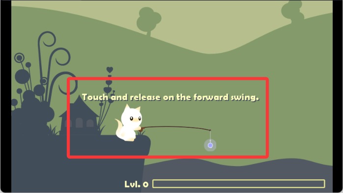 2、開(kāi)始游戲后長(zhǎng)按屏幕即可甩出魚(yú)鉤。