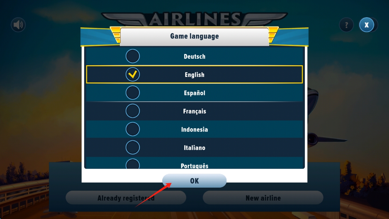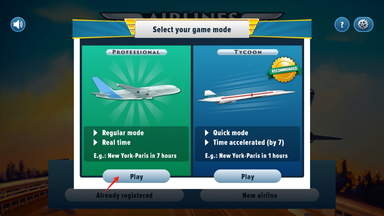 1、在Airlines游戲模式選擇界面,跟隨箭頭提示,選擇合適的游戲模式,點(diǎn)擊開始游戲。