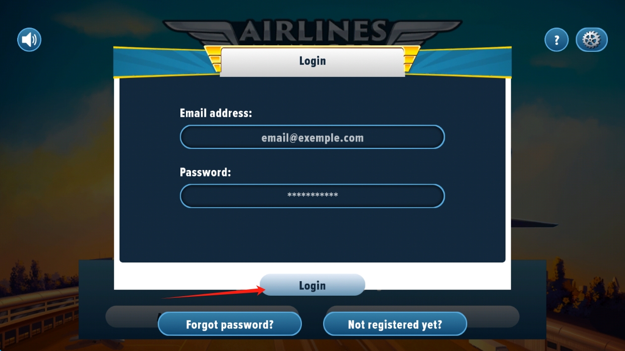 2、進(jìn)入游戲登錄界面,根據(jù)箭頭提示,輸入郵箱地址和密碼,點(diǎn)擊登錄按鈕,點(diǎn)擊登錄。