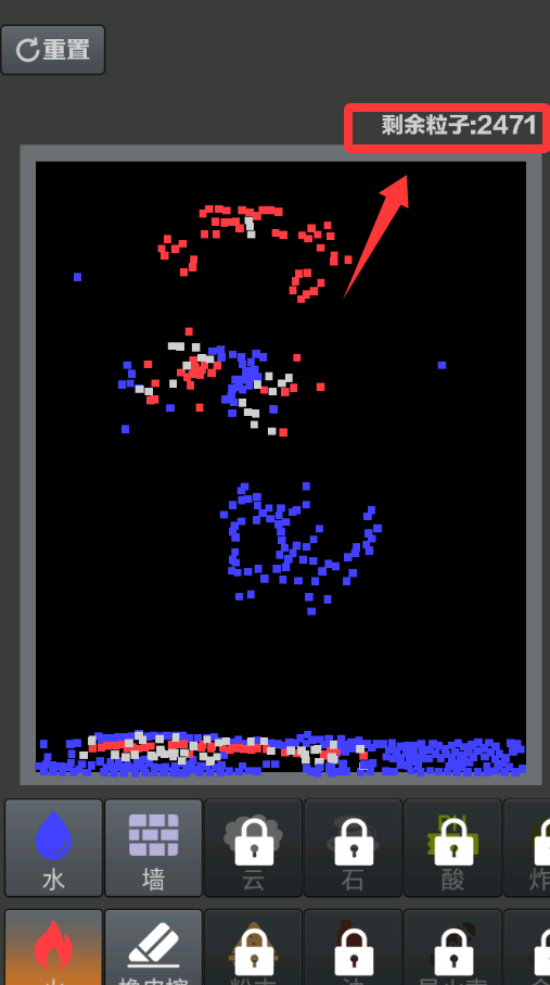 4、紅色框框那里是顯示剩余粒子的數(shù)量。