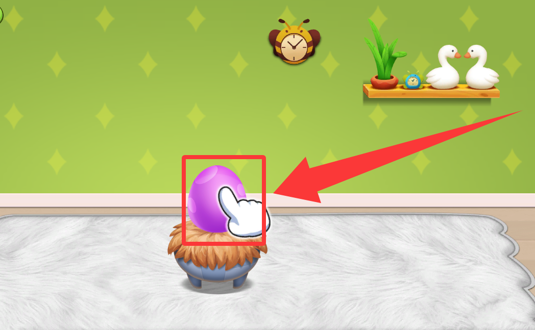 3、進(jìn)入游戲點擊紅色框框的紫色蛋。