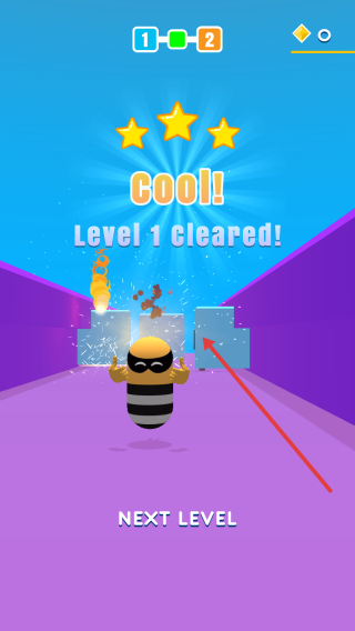 3、通關(guān)后點擊NEXT LEVEL按鈕,進入下一關(guān),持續(xù)優(yōu)化路徑、躲避障礙,推進游戲挑戰(zhàn)。