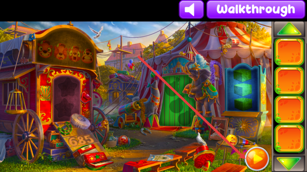 1、進(jìn)入游戲界面后,觀察馬戲團(tuán)場(chǎng)景,點(diǎn)擊各處物件探索,像帶動(dòng)物頭像的車廂這是開(kāi)啟解謎的第一步。