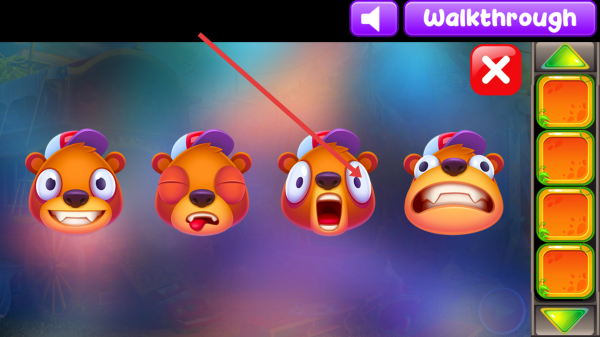 2、遇到動(dòng)物頭像謎題,對(duì)比車廂上的頭像,點(diǎn)擊對(duì)應(yīng)表情的小熊頭像,按順序匹配,注意細(xì)節(jié)別點(diǎn)錯(cuò)。
