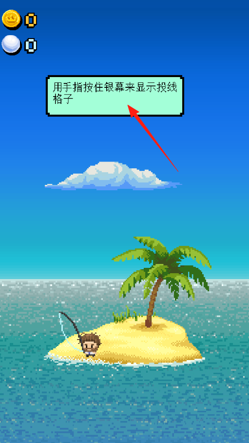 1、進(jìn)入荒島釣魚(yú)按照提示用手指按住屏幕,觸發(fā)投線格子顯示,通過(guò)此操作為釣魚(yú)做準(zhǔn)備,掌握投線輔助工具,體驗(yàn)釣魚(yú)前期準(zhǔn)備機(jī)制。