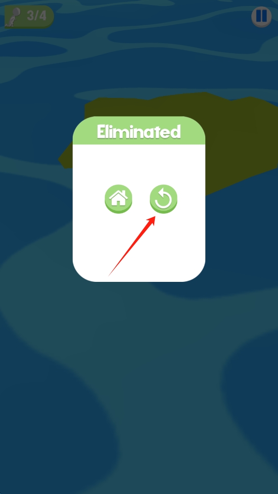 3、在游戲失敗界面,根據(jù)箭頭提示,點擊重新開始按鈕,重新開始游戲,繼續(xù)挑戰(zhàn),推進游戲進度。