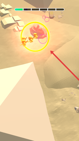 2、在進入到關卡場景,滑動屏幕操控角色穿過光圈,讓多個角色圍繞一起飛躍,借助團隊抵達終點。