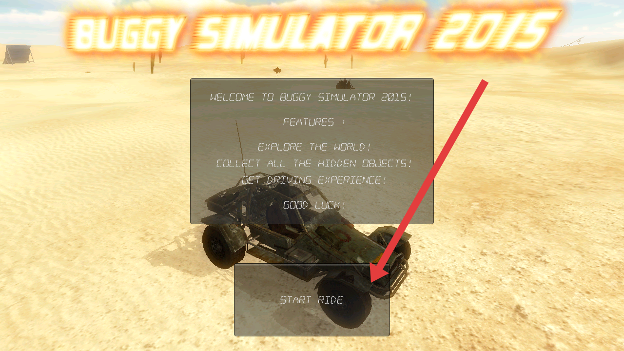1、在沙漠越野賽車的游戲啟動(dòng)界面,點(diǎn)擊START RIDE按鈕,開啟越野車沙漠駕駛之旅。