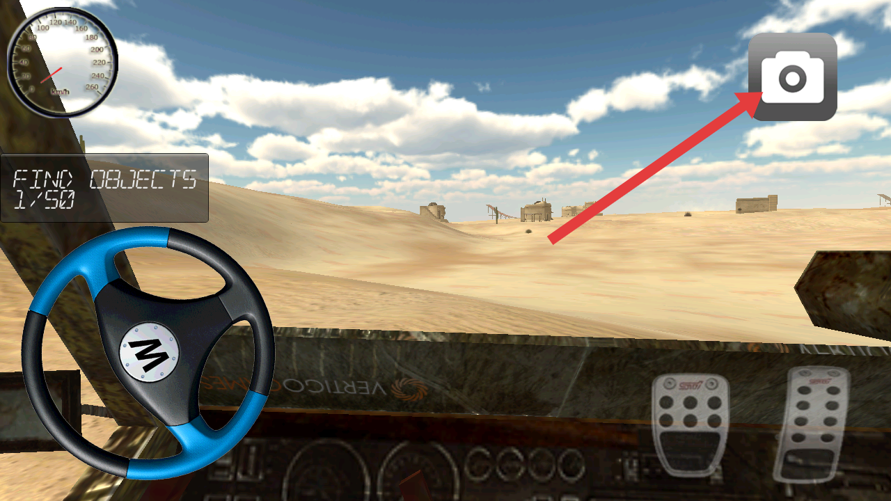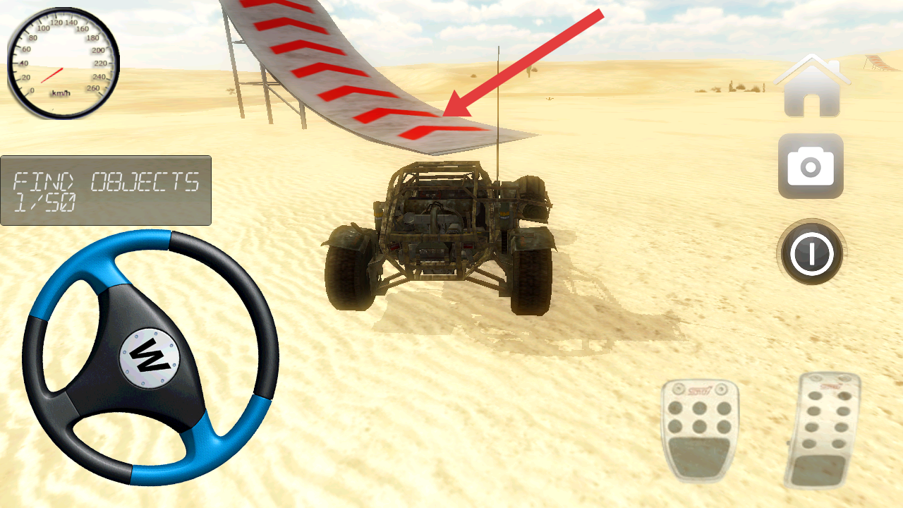 3、操控車輛駛向紅色箭頭標(biāo)識(shí)的斜坡,嘗試特技跳躍,同時(shí)推進(jìn)尋找物品任務(wù)當(dāng)前進(jìn)度1/50。