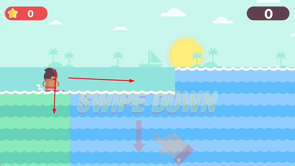 1、操控沖浪角色在海面場景中移動,角色可前后左右移動,這是開啟游戲的關鍵操作。