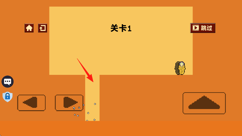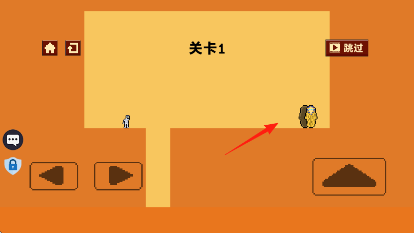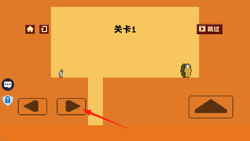 1、進(jìn)入游戲開(kāi)始點(diǎn)擊左側(cè)箭頭按鈕,控制像素人向右移動(dòng),靠近黃色區(qū)域缺口。
