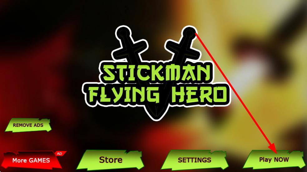 1、打開游戲后,在標(biāo)題界面點(diǎn)擊右下角綠色的Play NOW的按鈕,進(jìn)入Stickman Flying Hero游戲。
