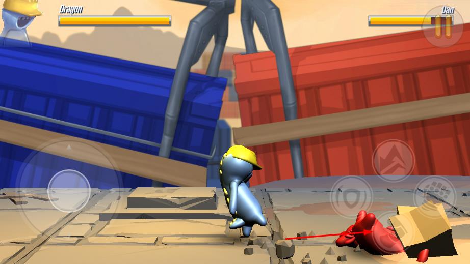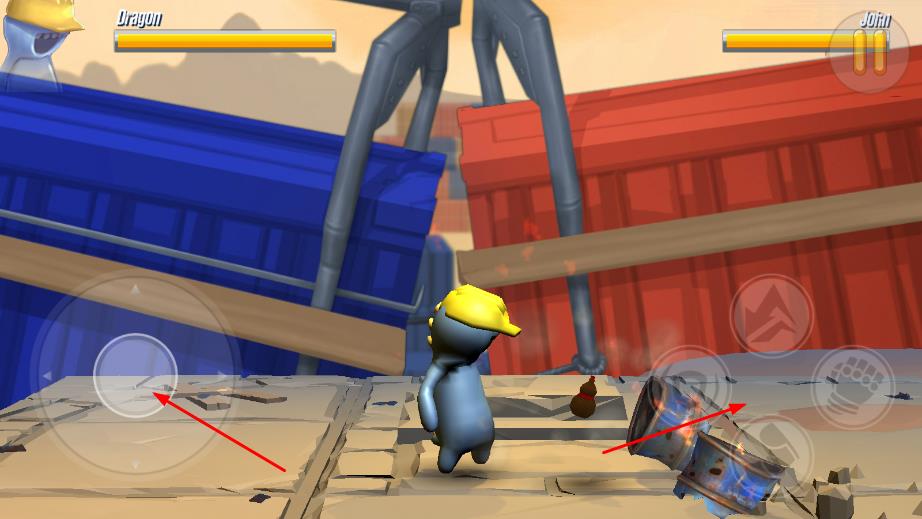 2、通過屏幕左下角的虛擬搖桿來操控橡皮人移動(dòng),在場景中尋找道具,操控橡皮人靠近并使用道具,來攻擊對手。