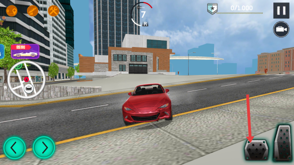 1、進(jìn)入賽道周圍,用左下角方向鍵控制轉(zhuǎn)向,右下角踏板控制加速剎車,按小地圖左側(cè)圓盤指引。