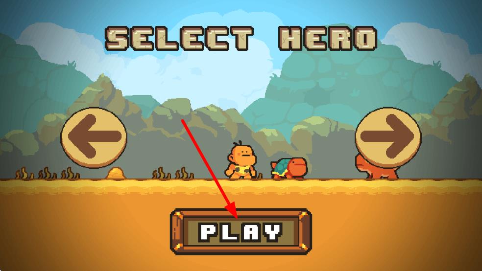 2、在SELECT HERO英雄選擇界面,選好心儀英雄左右箭頭切換后,點(diǎn)擊PLAY按鈕,進(jìn)入對(duì)應(yīng)英雄的關(guān)卡。