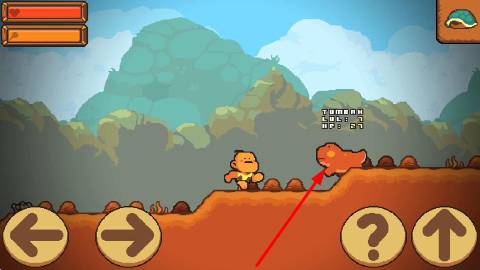 3、操控選定英雄,面對(duì)箭頭指向的怪物,利用左右移動(dòng)、攻擊按鍵,擊敗怪物推進(jìn)關(guān)卡,注意自身血量。