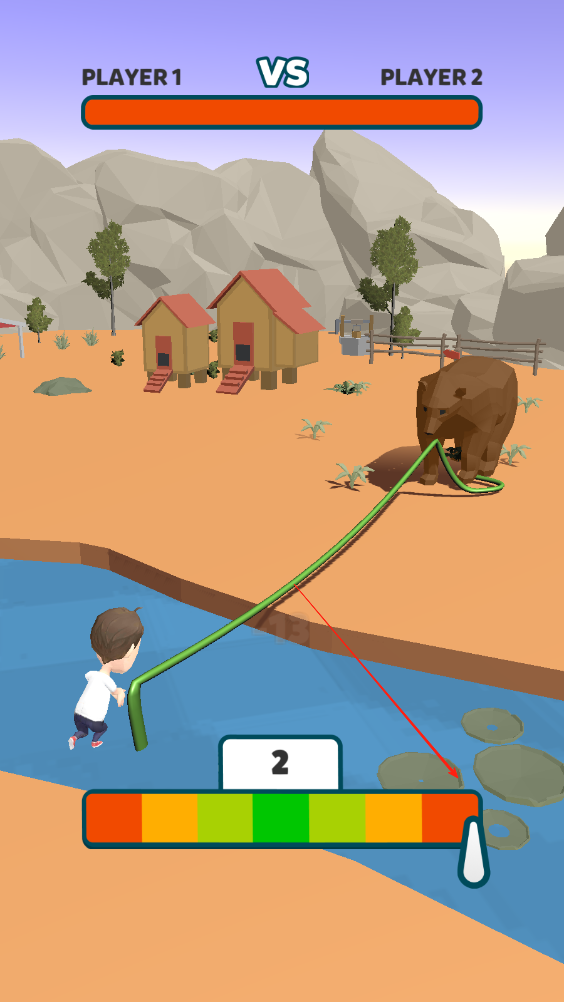1、繩索控制與發(fā)力:通過(guò)操作控制繩索的拉扯力度與節(jié)奏,觀察繩索傾斜角度判斷雙方態(tài)勢(shì),在熊發(fā)力間隙加大拉力,逐步將其拉向湖邊,這是基礎(chǔ)操作核心。