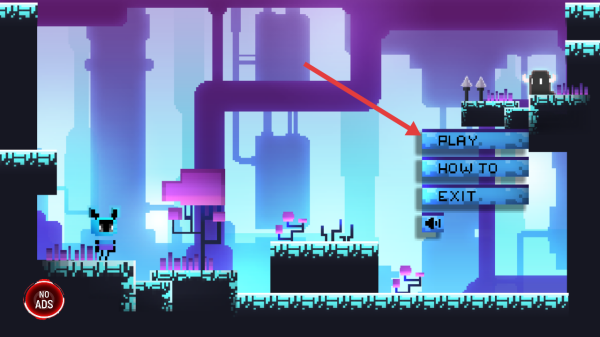 1、主界面點(diǎn)擊PLAY,進(jìn)入關(guān)卡選擇頁(yè)選解鎖的1號(hào)關(guān)卡,操控像素角色在橫版場(chǎng)景跳躍,收集綠寶石推進(jìn)冒險(xiǎn)。