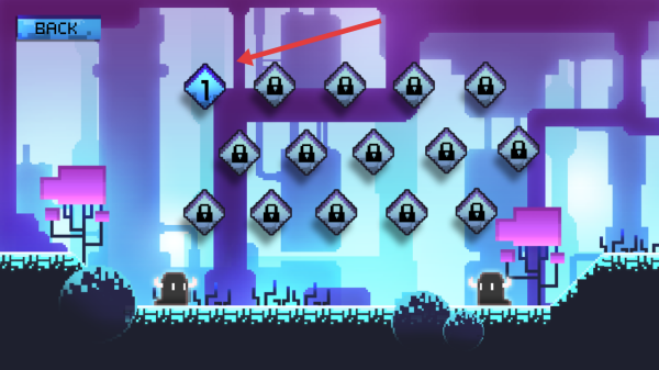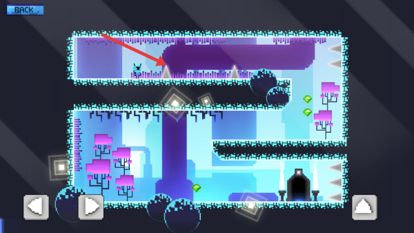 3、抵達(dá)關(guān)卡終點(diǎn)黑色門(mén)狀目標(biāo)完成挑戰(zhàn),返回關(guān)卡列表解鎖后續(xù)關(guān)卡,重復(fù)流程探索更多像素場(chǎng)景內(nèi)容。