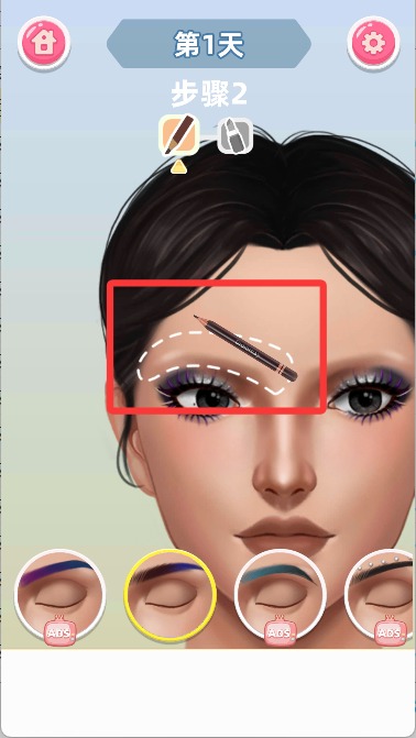 2、每次化妝步驟均有明確指引,玩家只需依照提示選擇妝容道具,如口紅色號、眼影配色、發(fā)型風(fēng)格等,打造完美造型。