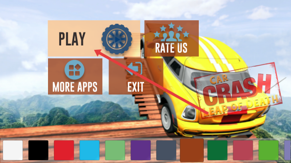 1、進入Car-Crash-Leap-of-Death游戲主界面后,根據(jù)箭頭指示,點擊PLAY按鈕開始游戲體驗。