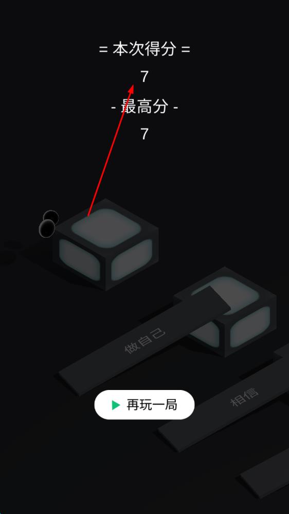 3、失敗重啟機(jī)制:一旦跳跳棋從方塊掉落,游戲立即結(jié)束,玩家可隨時(shí)重新開(kāi)始,在反復(fù)試錯(cuò)中總結(jié)經(jīng)驗(yàn),提升對(duì)力度與距離的把控能力,不斷刷新最高分。