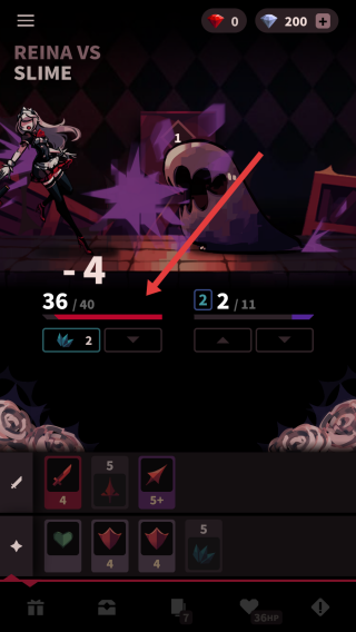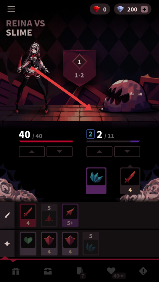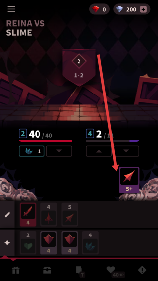1、進(jìn)入對戰(zhàn)頁面,優(yōu)先出高傷害卡如紅色劍卡4,快速壓低史萊姆血量,連擊攻擊,別留低費卡。