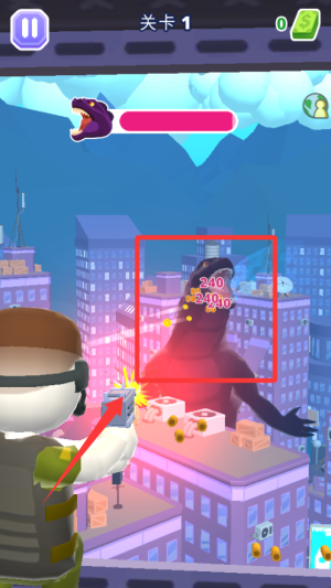 2、飛行途中注意觀察雷達和周圍環(huán)境,發(fā)現(xiàn)怪物靠近要及時瞄準射擊。