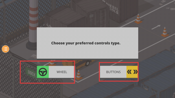 2、在控制方式選擇界面,可選擇WHEEL方向盤(pán)控制或BUTTONS按鈕控制,根據(jù)個(gè)人喜好選擇合適的操控方式。