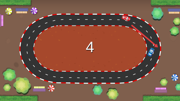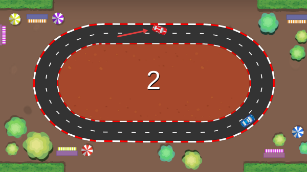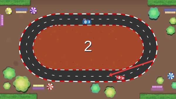 2、到了第二圈在環(huán)形賽道,利用直道加速拉近差距,彎道精準控速卡住超車,留意躲開行駛過來的車。