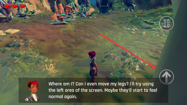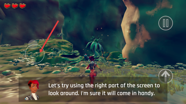 1、按提示,左屏滑動(dòng)控制角色移動(dòng),適應(yīng)操作后,沿路徑探索,留意發(fā)光植物、奇異地貌,收集線索。