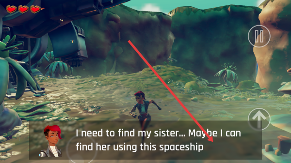 3、靠近飛船時(shí),觸發(fā)交互,探索內(nèi)部找線索,同時(shí)留意角色血量心形圖標(biāo),避開危險(xiǎn),持續(xù)推進(jìn)劇情。