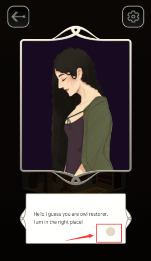1、點(diǎn)擊紅框圓形按鈕,確認(rèn)對(duì)話繼續(xù)游戲劇情。