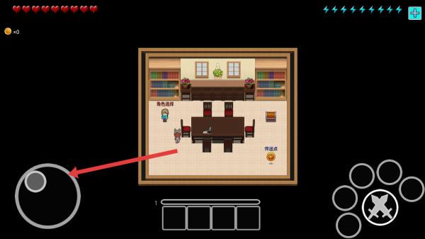 2、通過搖桿移動(dòng)角色,抵達(dá)房間內(nèi)金幣標(biāo)識位置,點(diǎn)擊傳送點(diǎn)出去探索資源,為后續(xù)行動(dòng)做準(zhǔn)備。