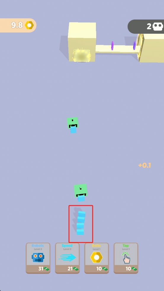 2、運用技能提升單位數(shù)量或移動速度,堆疊藍(lán)色方塊構(gòu)建立體結(jié)構(gòu),依托收集的資源拓展搭建規(guī)模,推進(jìn)造型成型。