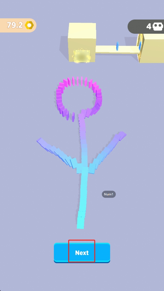3、待方塊排列成花朵狀多米諾圖案后,點擊底部藍(lán)色Next按鈕,開啟下一關(guān)的復(fù)雜圖案搭建挑戰(zhàn)。