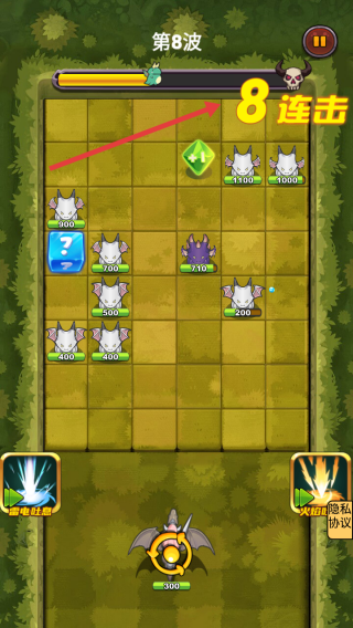 3、持續(xù)堅守陣地,抵御第8波及更多輪次怪物,守護上方核心血條,推進關卡層數(shù),解鎖更高難度挑戰(zhàn)與獎勵。