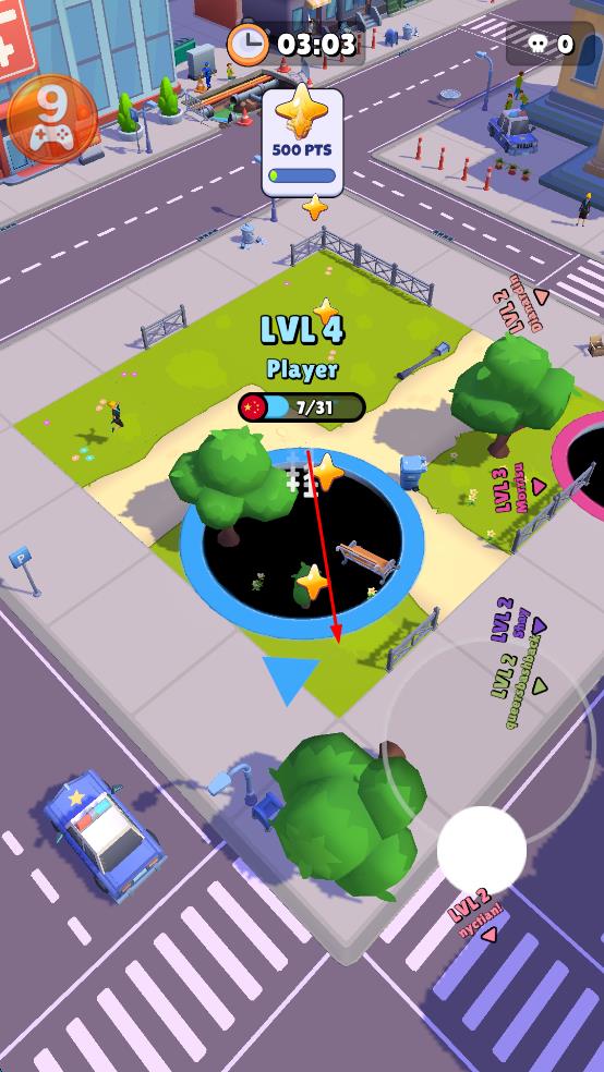 2、在吞噬過程中,留意場景中的各種元素,像樹木、長椅等都可吞噬,同時要避開其他玩家的黑洞,防止被對方吞噬,保證自身安全。