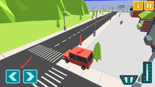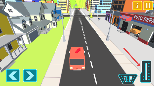 2、點(diǎn)擊屏幕上的油門按鈕,控制汽車行駛,注意不要裝到其他的車輛。