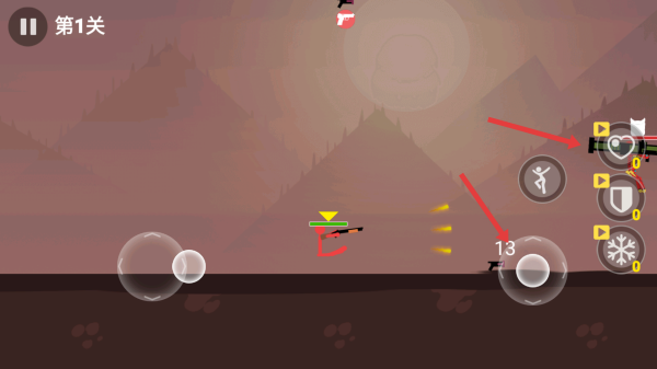 2、在戰(zhàn)斗過程中,通過左右移動角色,拾取槍支并進(jìn)行射擊,攻擊敵人。