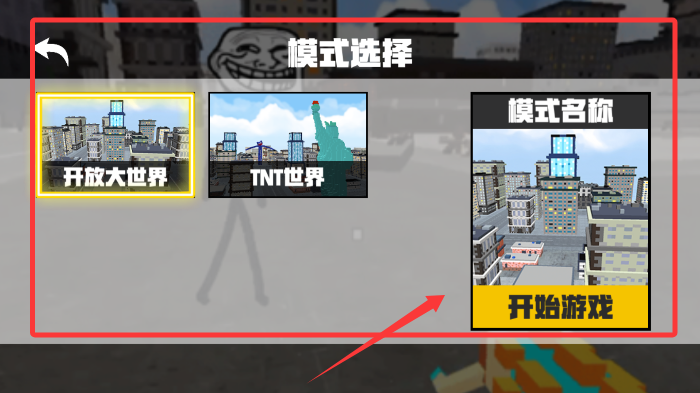 2、切換至模式選擇頁面,選取"開放大世界"等玩法,確認(rèn)后正式載入。