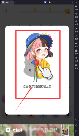 2、通過(guò)點(diǎn)擊畫(huà)面中的數(shù)字色塊進(jìn)行上色,系統(tǒng)智能匹配對(duì)應(yīng)顏色,操作簡(jiǎn)單直觀,讓藝術(shù)創(chuàng)作變得輕松有趣。